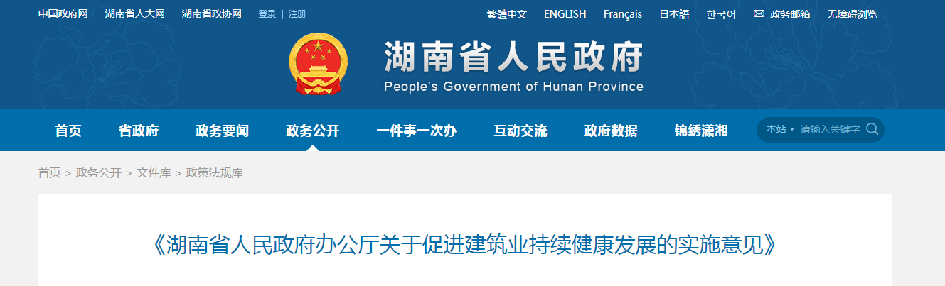 为进一步加快湖南省建筑业改革发展步伐,促进建筑业转型升级,推动湖南省向建筑业强省迈进,根据《***办公厅关于促进建筑业持续健康发展的意见》(国办发[2017]19号)文件精神。日前,湖南省人民政府办公厅发布关于促进建筑业持续健康发展的实施意见,明确推进建筑产业现代化,推动传统建造方式的变革,加快推进装配式建筑的应用扩大装配式建筑覆盖面。