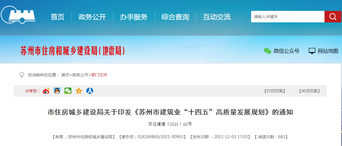 日前,为认真贯彻落实党中央、***和省级、省政府关于发展绿色建筑的决策部署,大力推进绿色建筑高质量发展,积极落实碳达峰碳中和要求,苏州住建局印发了《苏州市建筑业“十四五”高质量发展规划》。