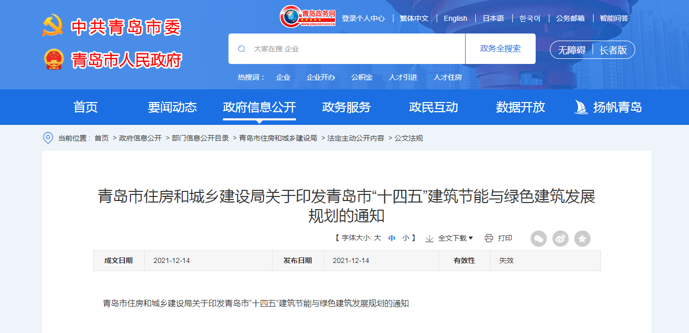 近日,青岛市住房与城乡建设局发布关于印发《青岛市“十四五”建筑节能与绿色建筑发展规划》的通知(以下简称《规划》)。《规划》指出到2025年,城镇新建建筑现行节能设计标准执行率为100%,全市装配式建筑占新建建筑面积达到50%以上,装配建筑装配率不低于50%。要求政府投资的重点工程和主城区的旧城、旧村改造项目,以及医院、学校、幼儿园、人才住房等政府投资类建筑项目采用装配式建筑建造。