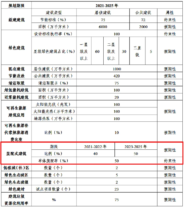 到2025年,城镇新建建筑现行节能设计标准执行率为100%。绿色建筑规模和质量效益显著提高,新建建筑全面实行绿色建筑标准,高星级绿色建筑比例稳步提高,既有建筑节能及绿色化改造有序推进,建筑电气化率逐步提高,可再生能源应用规模不断扩大,建筑能源结构不断优化,建筑建造方式更加清洁化、绿色化、智能化,绿色建筑全产业链逐步完善,力争走在全国建筑节能领域前列,在2030年前实现建筑领域碳达峰。