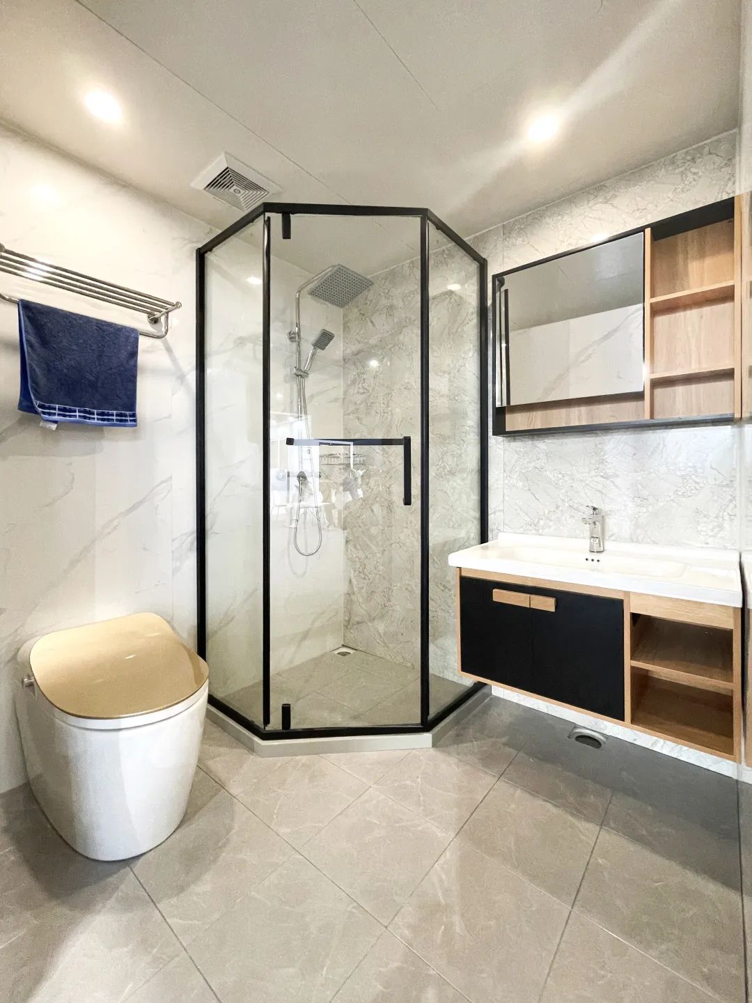 GRC一体成型底盘+SMC墙板全新结合整体卫生间:金莎丽全新升级创新型整体卫生间,GRC一体成型防水底盘特殊的结构免去了繁琐的防水步骤,从根源上避免渗漏,踩踏无空洞感,使用感受与传统装修无异;SMC墙板具有轻质环保、安装便捷、使用寿命长,样式丰富等优良特性。从整体来看,GRC一体成型底盘+SMC墙板+集成天花构成整体空间,设计科学合理,空间精致美观,材质经久耐用,为行业用户带来“轻便安装、快速成型、质量稳定可靠”的整体卫生间全新方案。