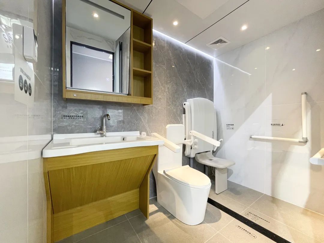 GRC系列医养卫生间:充分考虑长者在卫浴生活中的特殊使用需求,金莎丽从多维度升级产品,将养老机构和医院的功能相结合, 把生活照料和康复关怀融为一体,采用GRC一体成型防滑底盘、轻钢龙骨架墙板,提升产品品质和整体活动空间,结合人性化部品部件设计,为长者打造一个安全、舒适、健康的日常洗漱淋浴环境,一个集医疗、康复、养老的宜居空间。