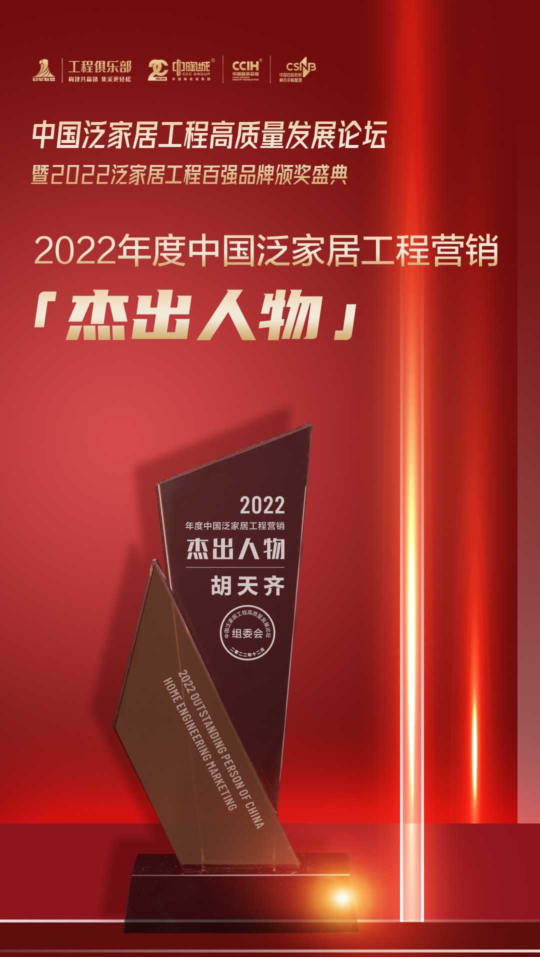 2022泛家居工程百强品牌甄选,为弘扬中国**工程品牌,凝聚各方力量,树立行业榜样,活动极具权威性与专业度。在本次泛家居工程百强品牌颁奖盛典上,金莎丽凭借卓越的综合品牌实力和高质量、高颜值产品,荣获2022年度中国泛家居“工程百强品牌”殊荣,金莎丽总经理胡天齐先生也获选了2022年度中国泛家居工程营销"杰出人物"称号。获此双项殊荣,既是来自消费者的高度肯定,也代表了全行业的认可。