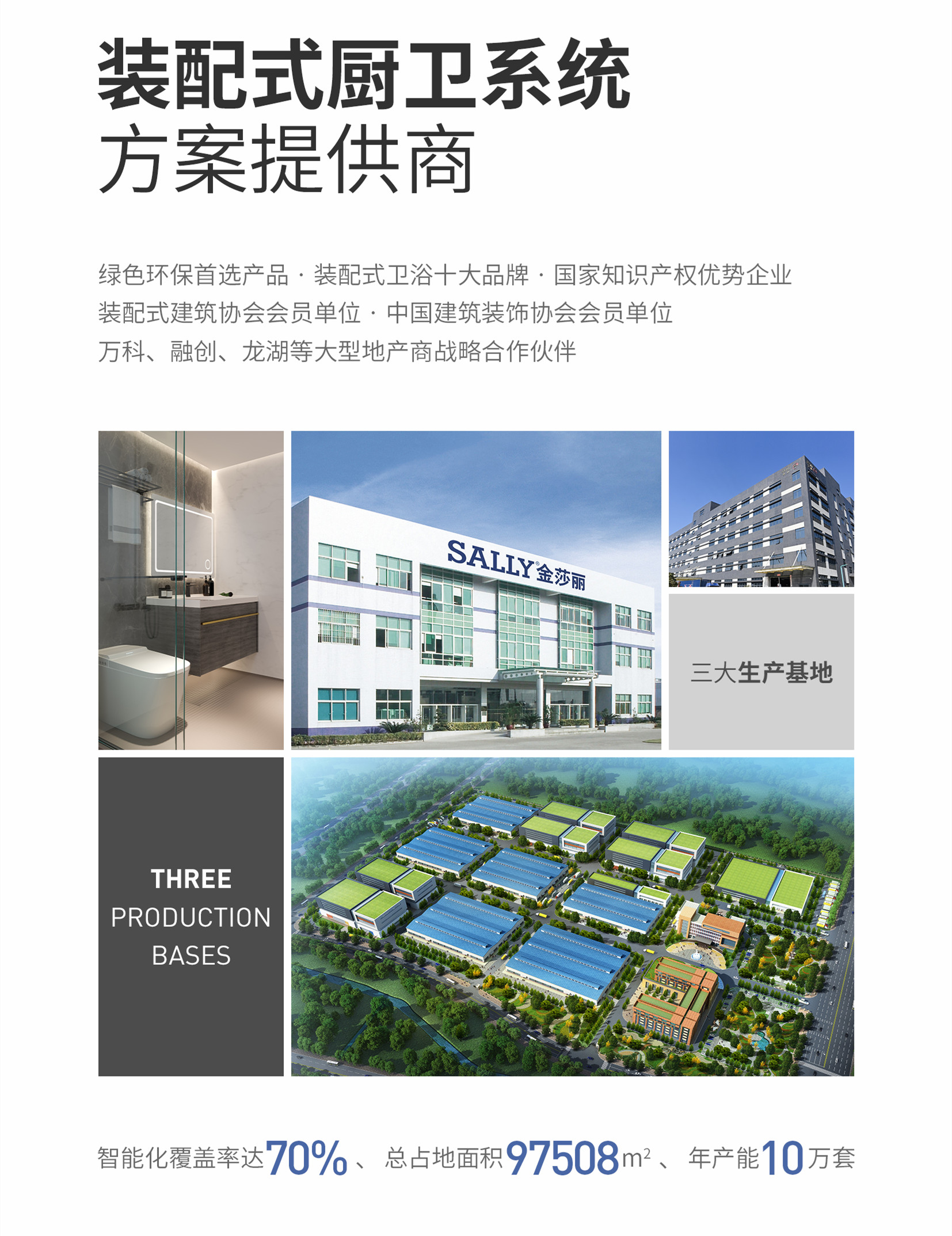 紧握发展机遇,紧跟市场趋势,未来金莎丽装配式厨卫将坚持不懈地研发创新技术产品,贴心为用户提供一站式装配式厨卫系统解决方案,不断推进装配式厨卫行业发展与普及,让装配式厨卫成为家居行业的一颗闪亮的新星。