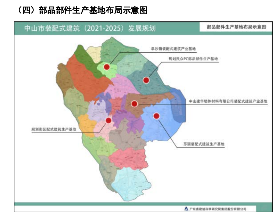本次规划将在全市24 个镇区中选取 14 个镇街作为装配式建筑的重点推进片区,为全市装配式建筑的发展起到积极示范带头的作用。进一步明确中山市装配式建筑发展目标,制定阶段性任务,建立完善保障机制,促进装配式建筑全面发展。